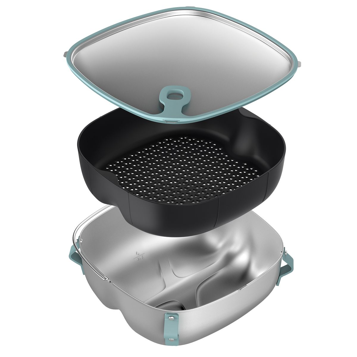 Vassoio cottura a vapore e coperchio, Recipiente per la frittura, App HomeID, Sistema blocca e rimescola, Lavabile in lavastoviglie