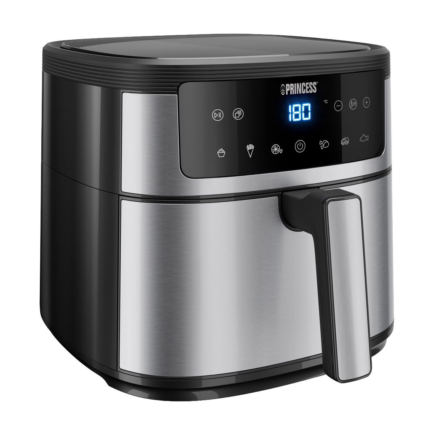PRINCESS Steam Aerofryer 182080 FRIGGITRICE AD ARIA, capacità 6,5 l, Max potenza 1700 W, 8 programmi, da 40 °C a 200 °C, Nero