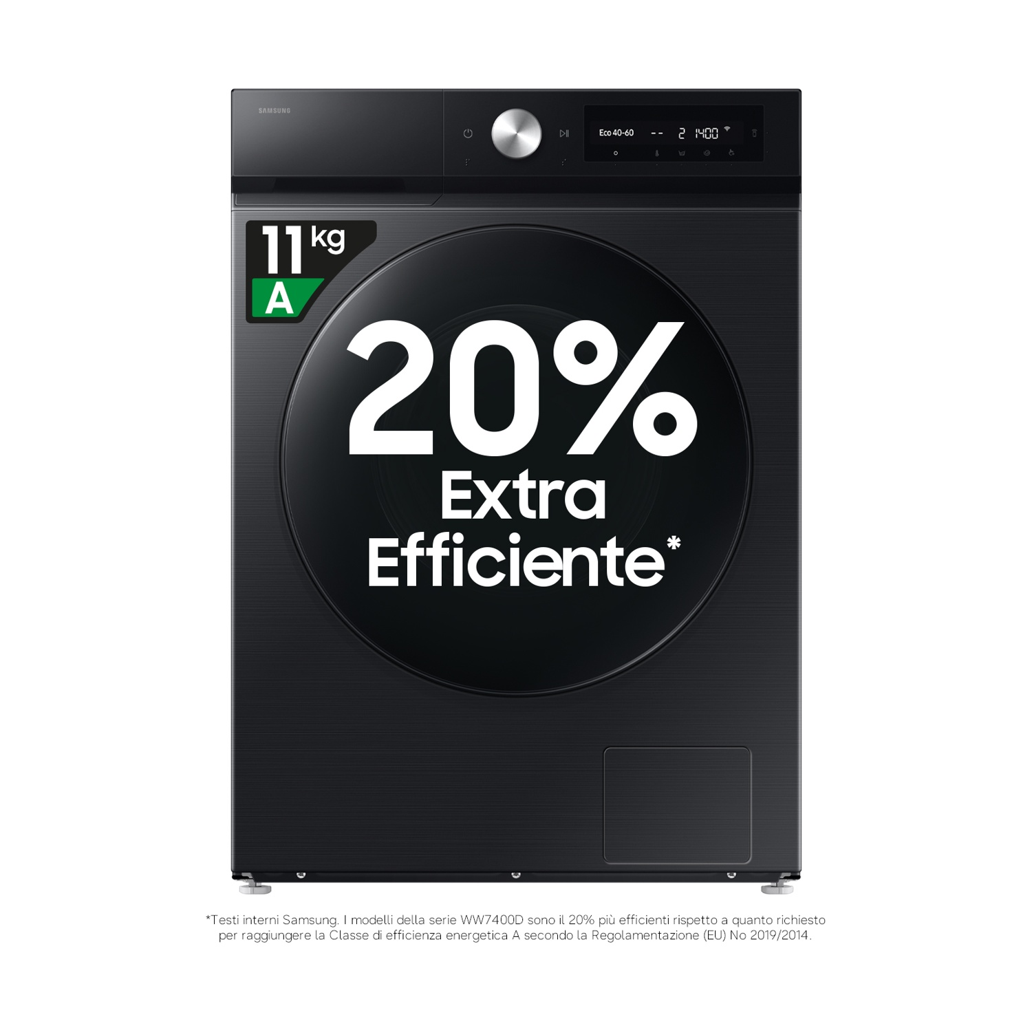 SAMSUNG WW11DB7B94GBU3 LAVATRICE, Caricamento frontale, 11 kg, 23 programmi, Profondità 60 cm, Nero, livello rumorosità centrifuga 72 dB(A), Classe A