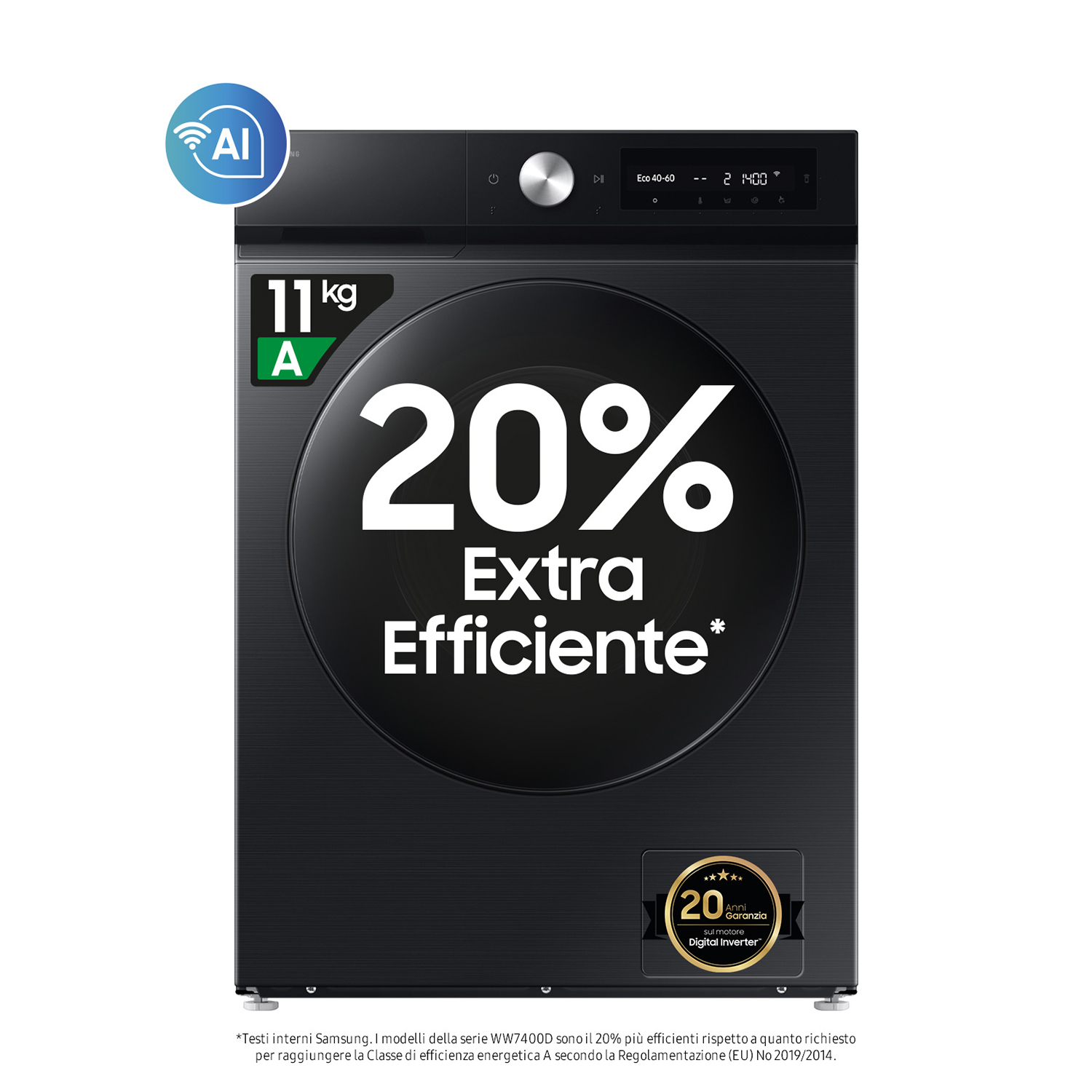 SAMSUNG WW11BGA046AE LAVATRICE, Caricamento frontale, 11 kg, 14 programmi, Profondità 600 mm, Bianco, livello rumorosità centrifuga 72 dB(A), Classe A