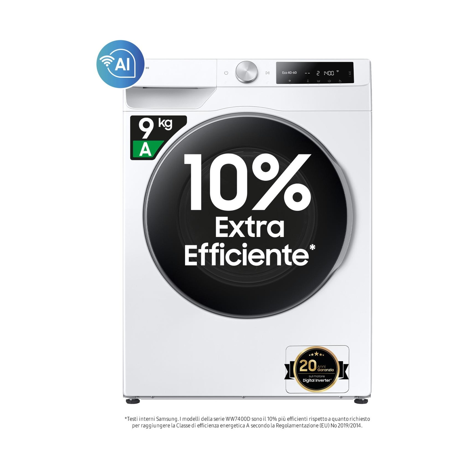 SAMSUNG WW90CGC04DAHET LAVATRICE, Caricamento frontale, 9 kg, 16 programmi, Profondità 60 cm, BIANCO, livello rumorosità centrifuga 72 dB(A), Classe A