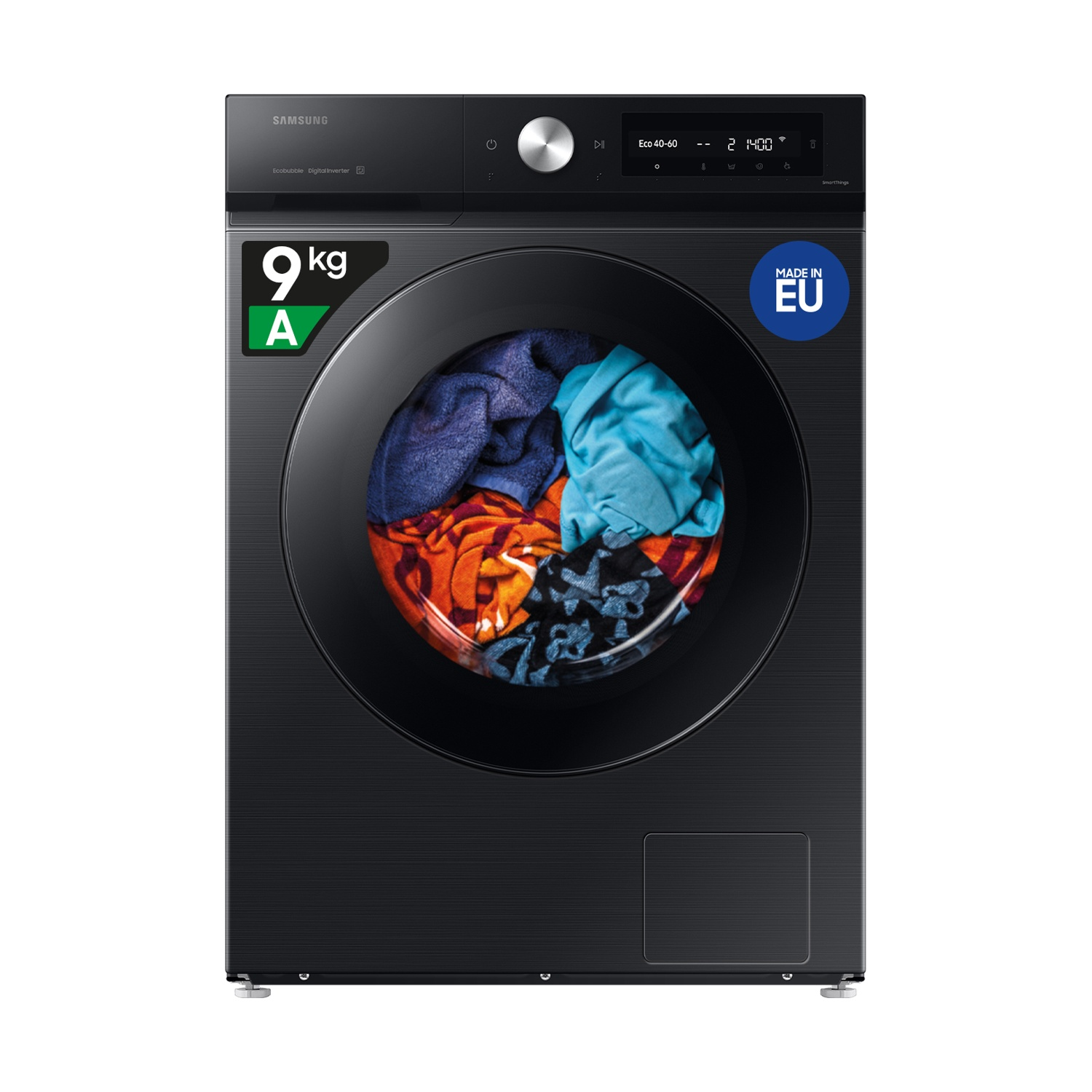 SAMSUNG WW90DB7U94GBU3 LAVATRICE, Caricamento frontale, 9 kg, 25 programmi, Profondità 60 cm, Nero, livello rumorosità centrifuga 72 dB(A), Classe A