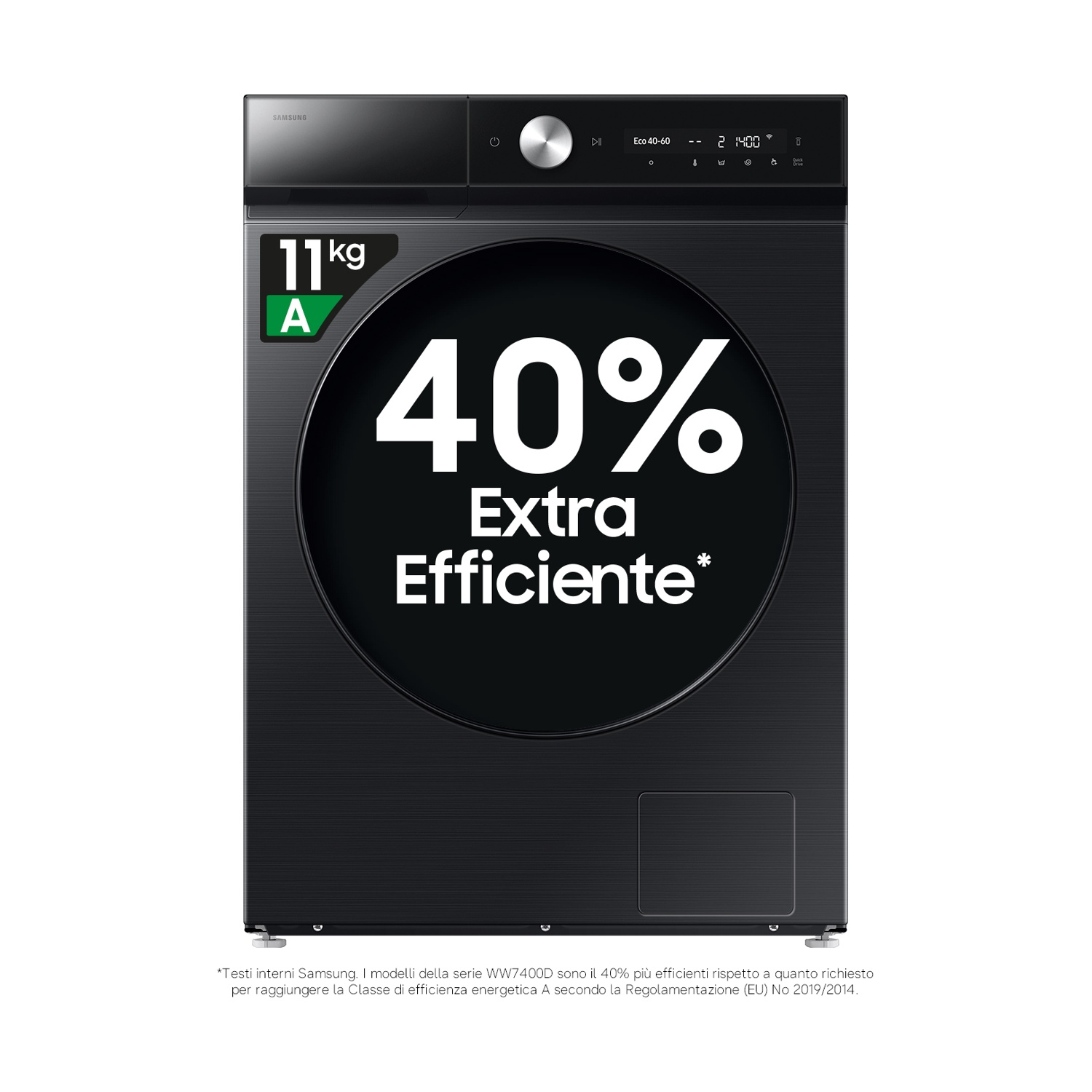 SAMSUNG WW11DB7B94GBU3 LAVATRICE, Caricamento frontale, 11 kg, 23 programmi, Profondità 60 cm, Nero, livello rumorosità centrifuga 72 dB(A), Classe A