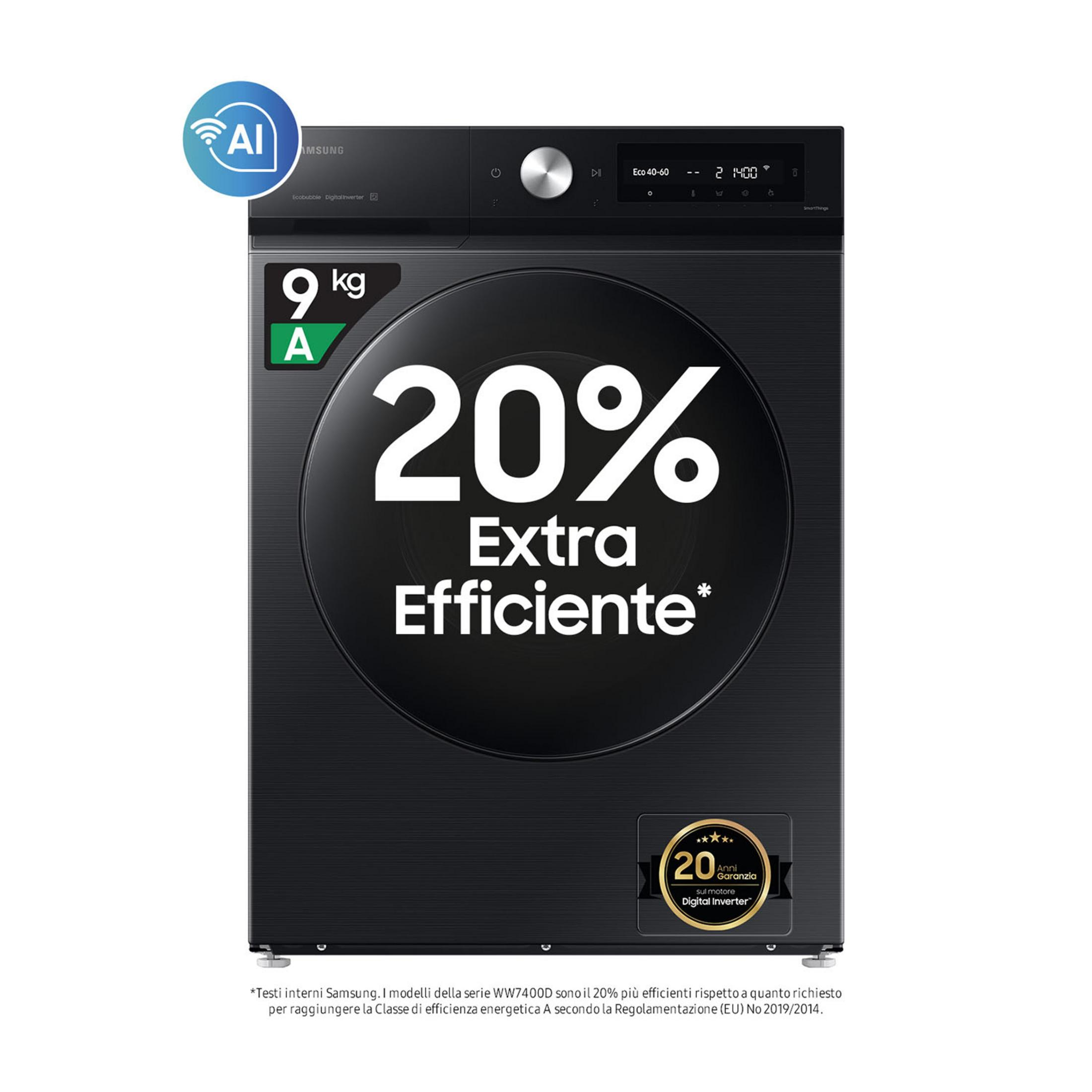 SAMSUNG WW90DB7U94GBU3 LAVATRICE, Caricamento frontale, 9 kg, 25 programmi, Profondità 60 cm, Black, livello rumorosità centrifuga 72 dB(A), Classe A