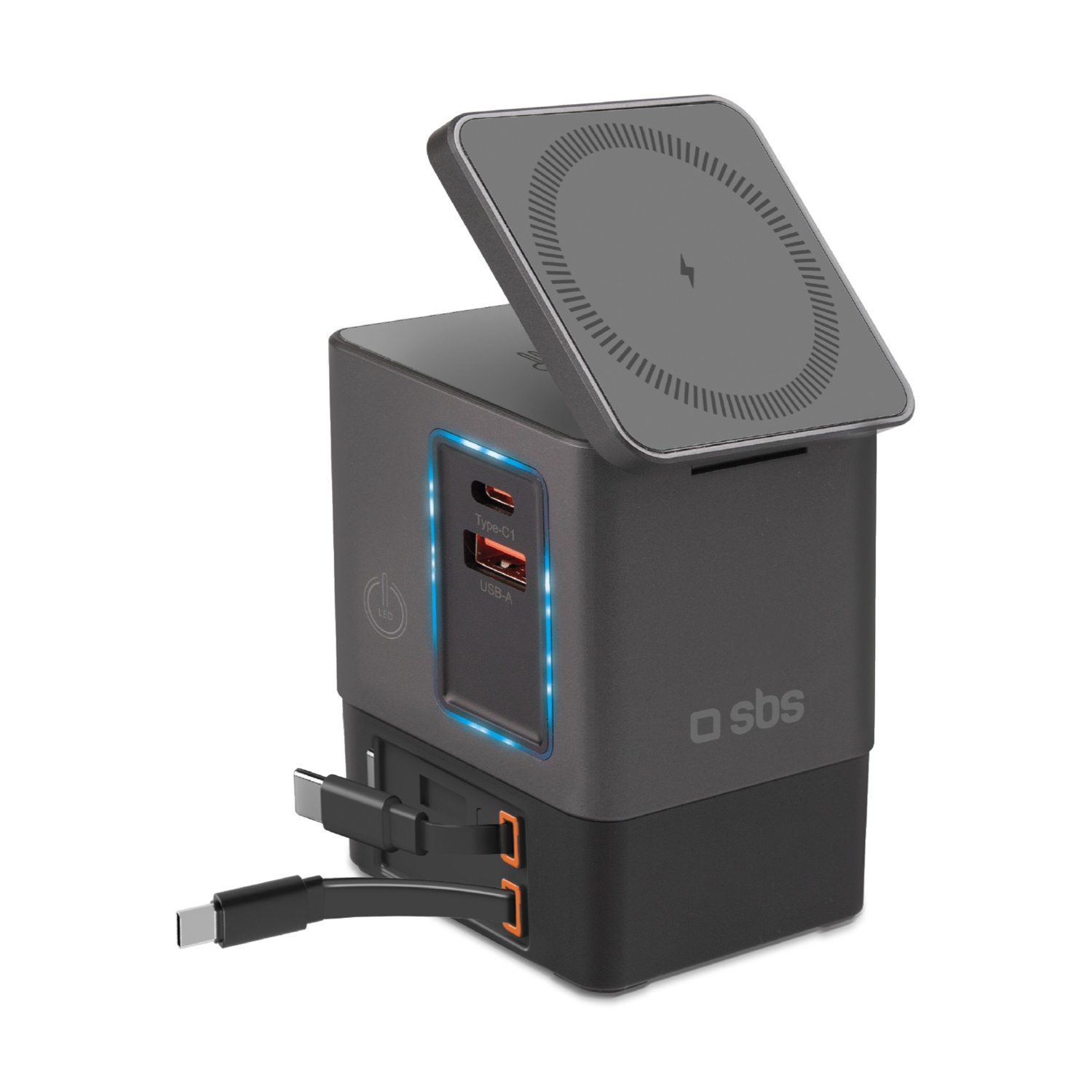 6 dispositivi ricaricabili contemporaneamente, Cavi Type-C integrati da 65W