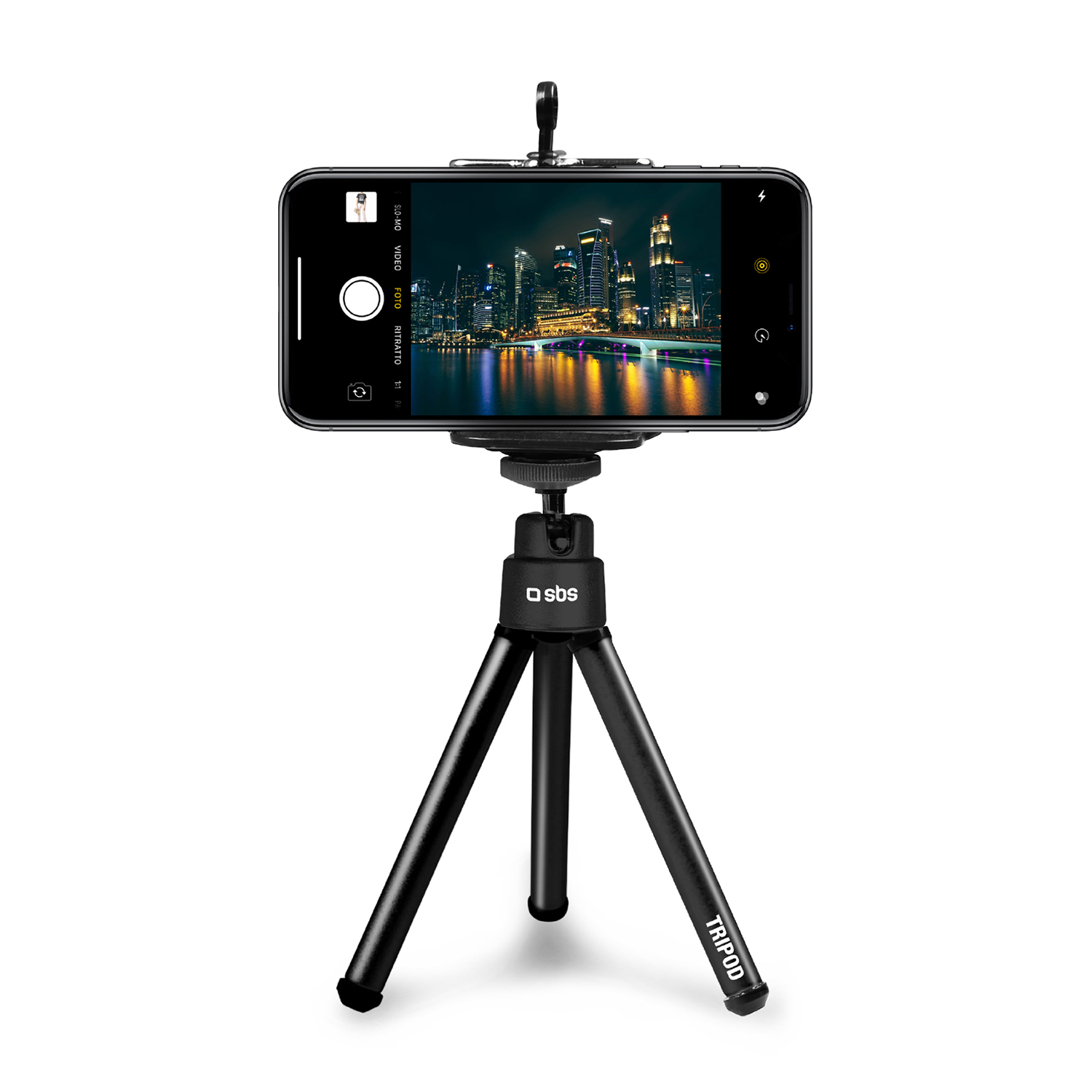 Rotazione: 360° in orizzontale - 90° in verticale; Lunghezza Gambe: 10 cm / 16 cm; Morsa a molla regolabile; Piedini in gomma.