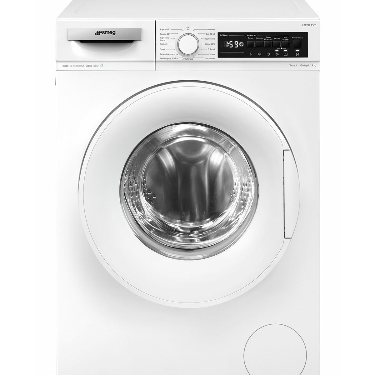 SMEG LB2T92ASIT LAVATRICE, Caricamento frontale, 9 kg, 10 programmi, Profondità 582 mm, Bianco, livello rumorosità centrifuga 76 dB(A), Classe A