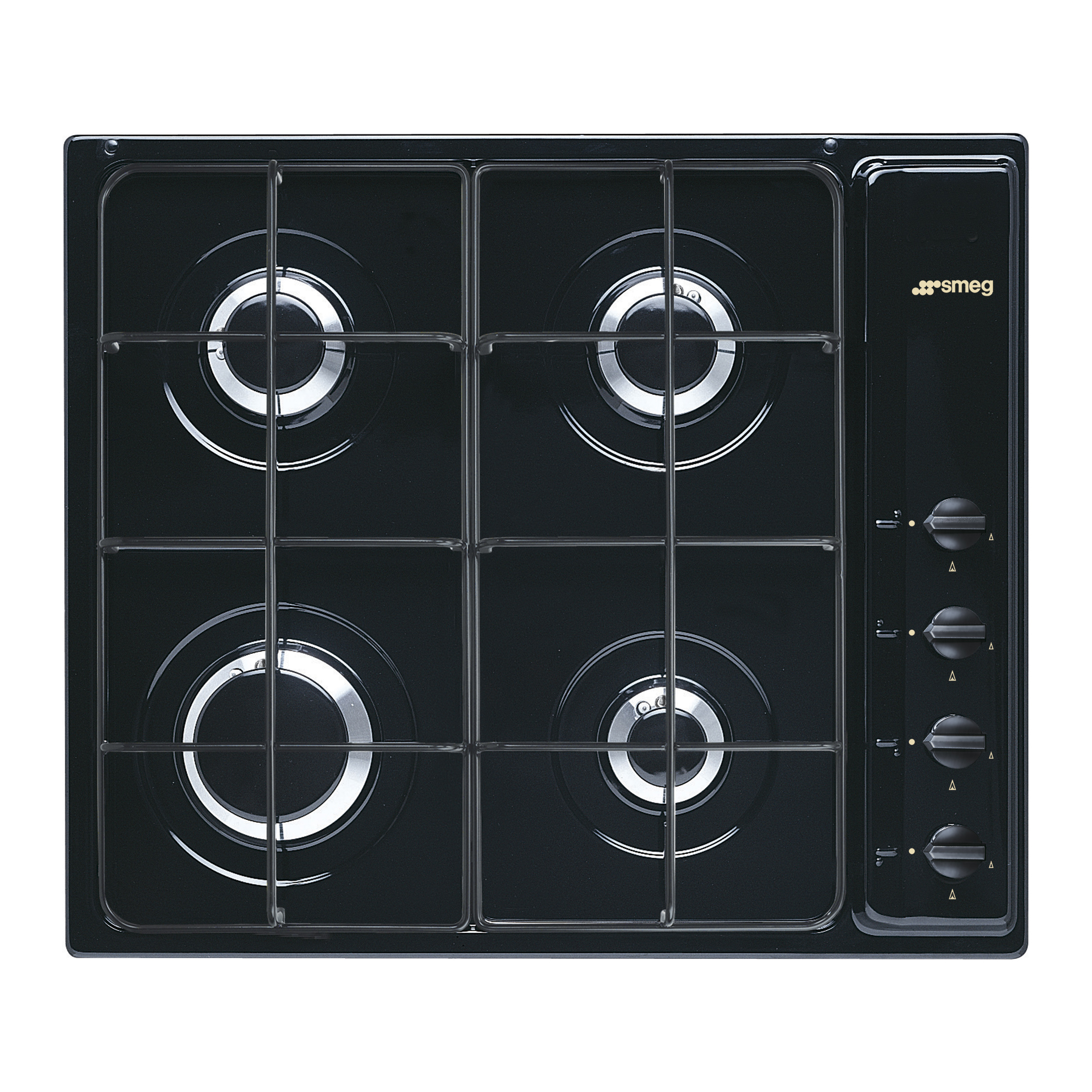 SMEG S64SN PIANO COTTURA GAS, 4 zone di cottura, dimensioni: L 58,5 cm, P 50 cm, piano in Smaltato, Nero