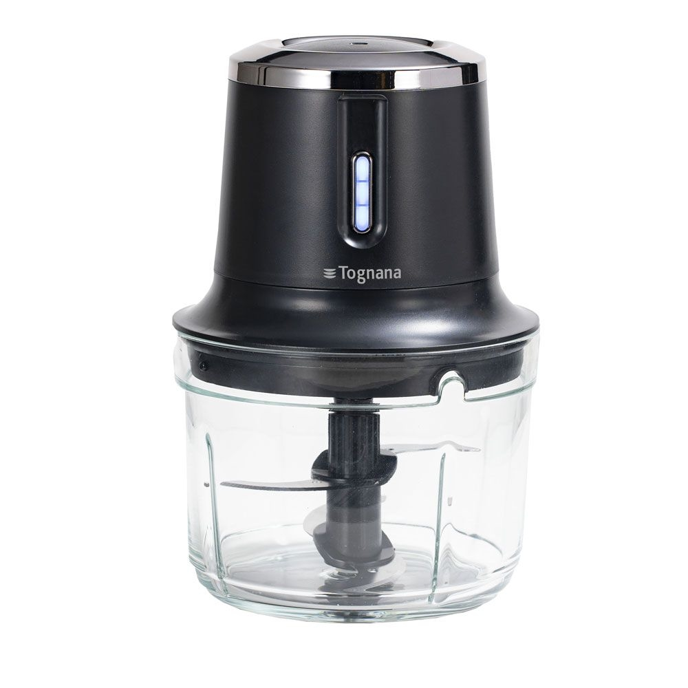 TRITATUTTO, Contenitore in vetro, Disco ondulato emulsionatore, Gruppo lame in acciaio inox, Coperchio per contenitore in vetro, Cavo USB-C di ricarica, Adattatore di ricarica, Manuale utente