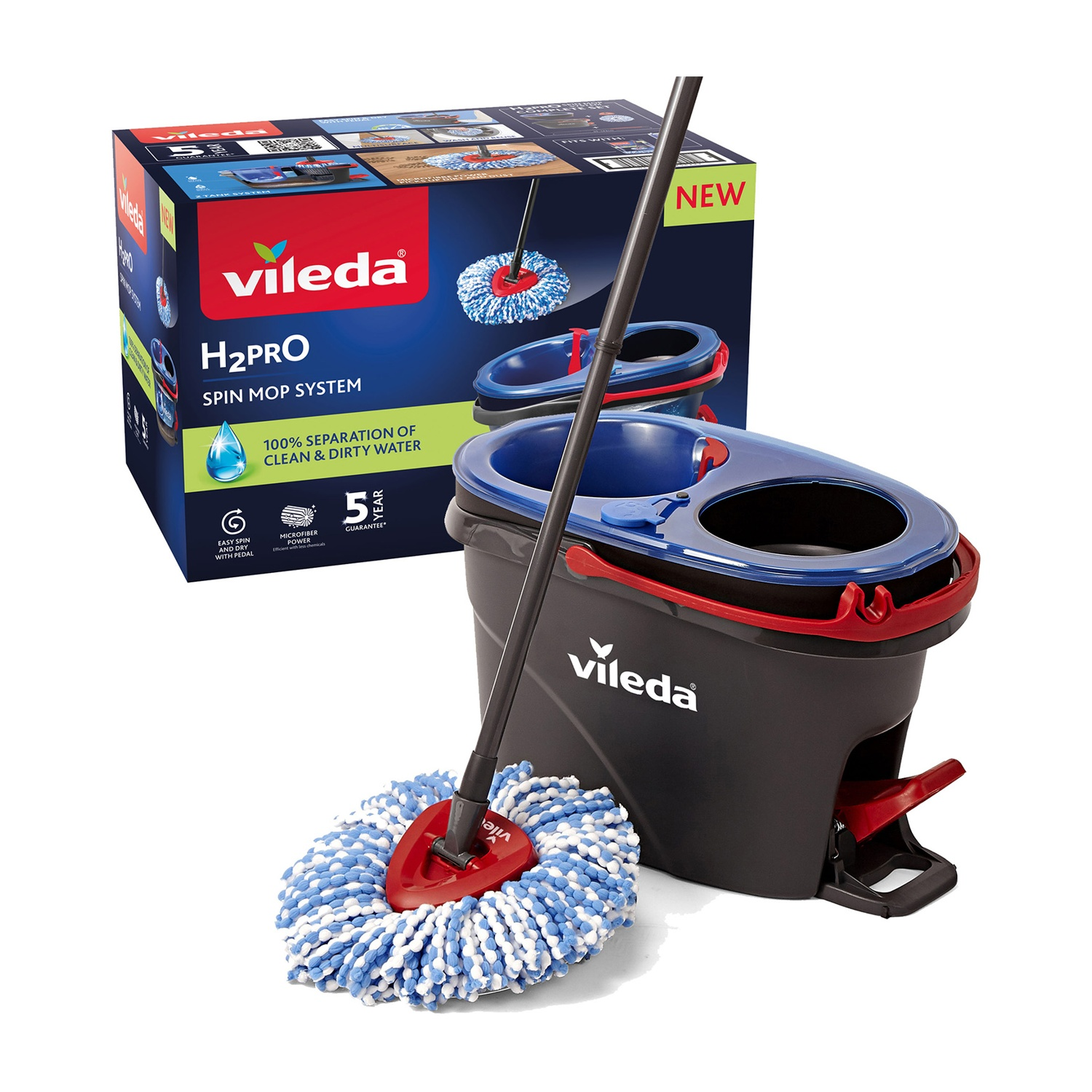 Sistema lavapavimenti con centrifuga; Due serbatoi per acqua sporca e acqua pulita; Fiocco lavabile in lavatrice; Adatto a tutte le superfici