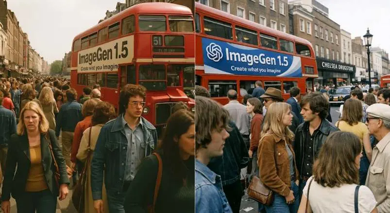 In generale, fa sapere OpenAI, il modello di ChatGPT Images 1.5 migliora la qualità delle immagini generate ex novo, soprattutto nei dettagli come i volti tra la folla, rendendo le immagini più naturali e immediatamente utilizzabili. È evidente nell'esempio che abbiamo riportato qui sopra e che ha utilizzato la stessa OpenAI per annunciare il nuovo modello di generazione di immagini. Il prompt è il medesimo in entrambi i casi: è stato chiesto a ChatGPT di generare un'immagine ambientata nella Chelsea degli anni Settanta, fotorealistica, con molte persone, con un autobus che reca la pubblicità di ImageGen 1.5. A sinistra possiamo vedere come avrebbe reso l'immagine il precedente modello di ChatGPT, mentre a desta quello nuovo: l'immagine risulta non solo più chiara e nitida, ma anche più realistica.