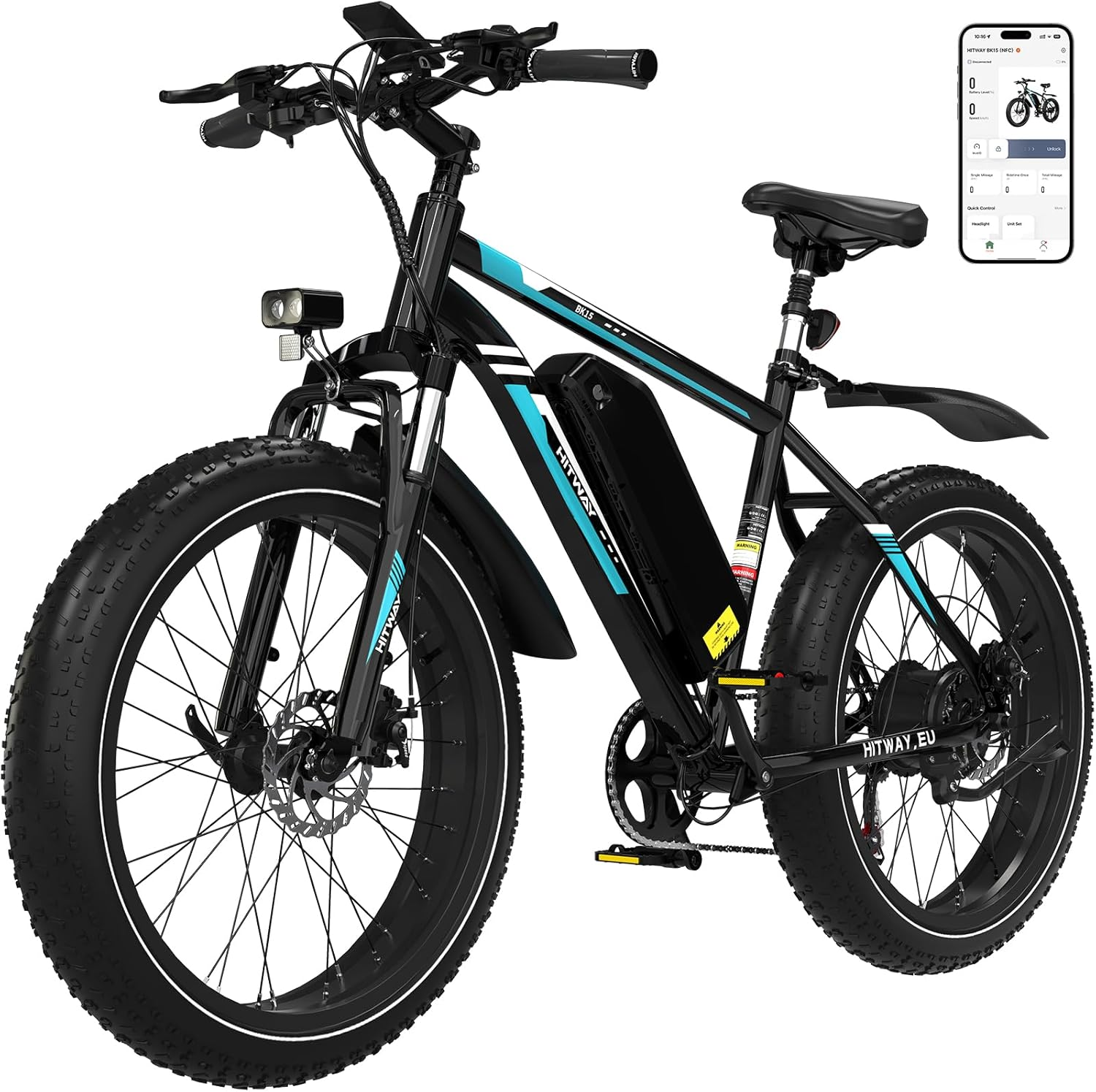 Mountainbike HITWAY BK15 Bicicletta Elettrica con pneumatico largo 4.0, Tre metodi di sblocco, 7 velocità