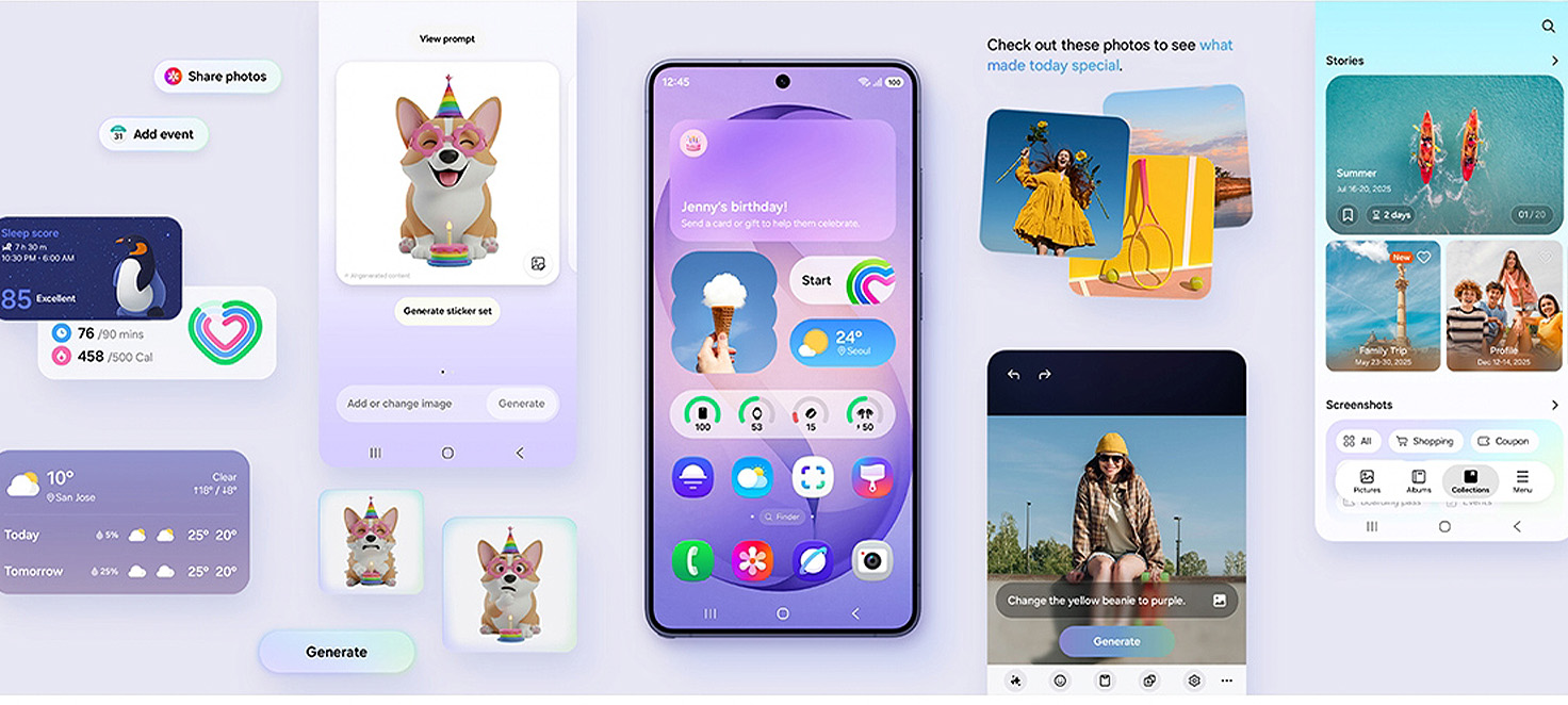 One UI 8.5 si adatta alle tue esigenze, personalizzando il tuo Galaxy in base a come lo utilizzi di solito. Progettati per essere semplici e intuitivi, i promemoria di Now Brief, i suggerimenti intelligenti di Now Nudge e Selezione AI semplificano le tue attività di ogni giorno con un semplice tocco.¹³,¹⁴,¹⁵