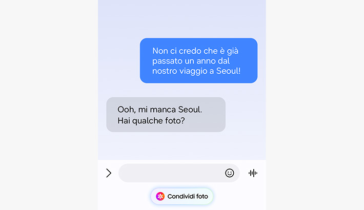 Ad esempio, se qualcuno ti chiede le foto di un viaggio che hai fatto, Now Nudge capirà cosa ti serve e ti manderà al punto giusto della Galleria, così potrai selezionare e inviare le foto in pochi tocchi.¹³