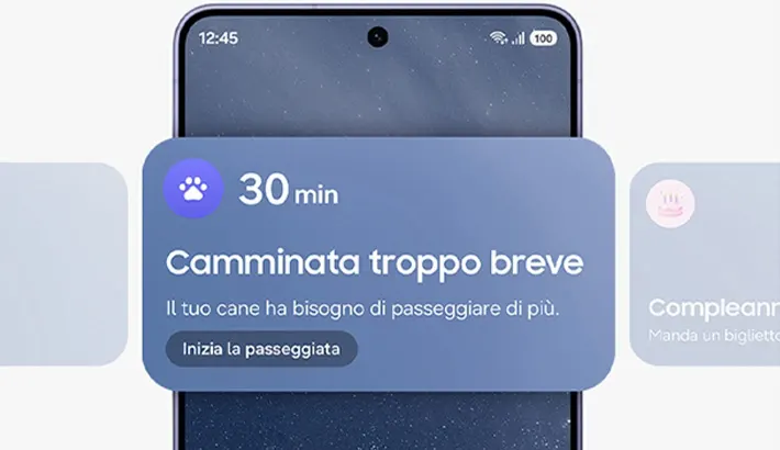 14_La funzionalità Now Brief richiede l’accesso a un Samsung Account. La disponibilità del servizio può variare a seconda della lingua, del modello di dispositivo, delle app. Per alcune funzionalità può essere necessaria una connessione di rete. La descrizione delle foto fornita per determinati momenti potrebbe non rispecchiare l’intenzione originale dell’utente. Le notifiche relative alle passeggiate insieme al tuo cane richiedono l’attivazione di SmartTag2 e Pet Care con SmartThings. SmartTag2 è venduto separatamente. Le notifiche devono essere attivate per essere utilizzate come dati richiamati. I dati richiamati dalle notifiche delle app supportate, come Messaggi, Gmail e Samsung Wallet, e i dati raccolti da Gmail sono disponibili solo previo consenso dell’utente all’autorizzazione di lettura di Gmail da parte di Intelligenza dati personali. I dati richiamati relativi ai dettagli della prenotazione sono disponibili solo nei messaggi di conferma della prenotazione.